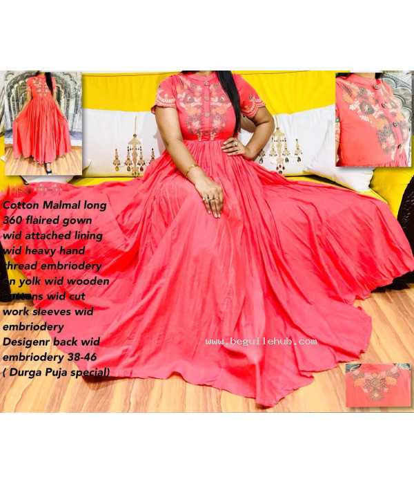 with Attached Lining with Heavy Hand thread Embroidery on yolk,