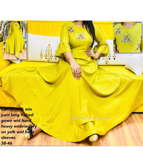 Cotton Silk mix Yarn Long Flaired Gown,