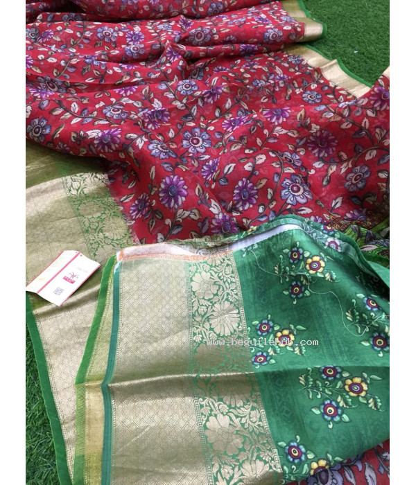 * Pure Premium Kora by Kora Floral Digital Printed Sarees with Weaving Borders* Pallu as in Pic* Pri..