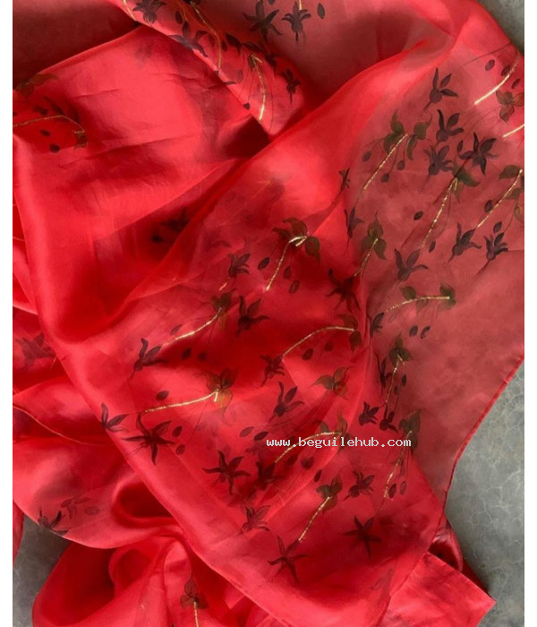 Pure Organza Silk Saree Hand painted - Red organza saree - TI125R - Alia bhat Saree