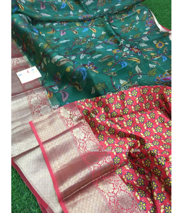 * Pure Premium Kora by Kora Floral Digital Printed Sarees with Weaving Borders