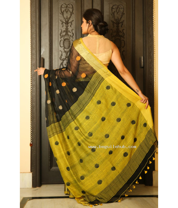Pure Handloom Zari Embroidered Linen Saree – HJ060 - Black