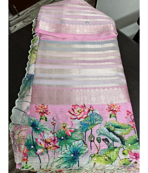 Designer Pink Kota Saree with Chamki Work & Scalloped Floral Borders - FS205