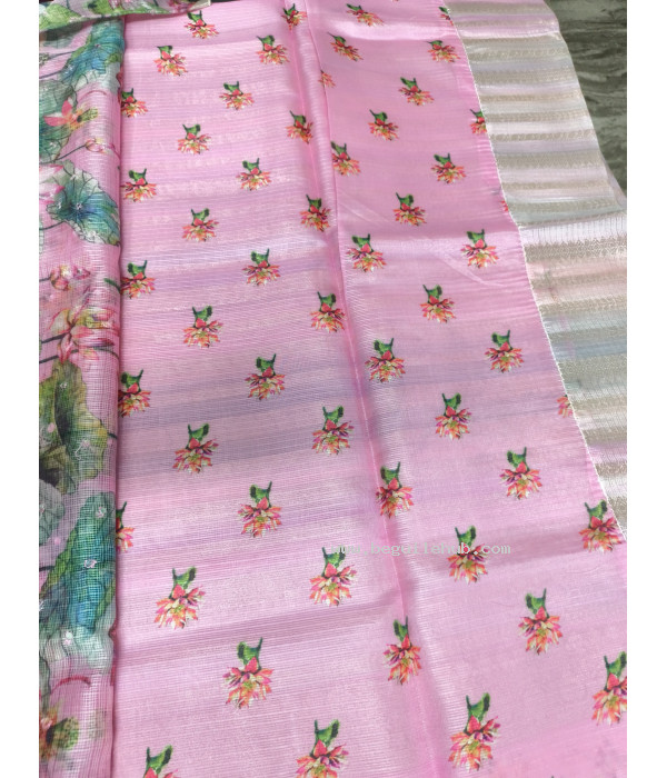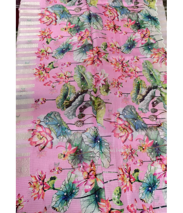 Tags: Pink Kota saree, Chamki work saree, Scalloped border saree, Floral border Kota saree, Designer Kota saree, Kota saree with blouse, Party wear Kota saree, Festive wear saree, Lightweight designer saree
