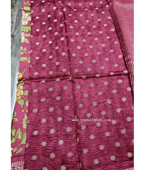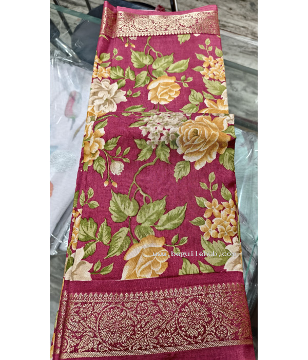Tags: Maroon floral saree, Zari border saree, Festive wear saree, Floral print saree, Designer maroon saree, Party wear floral saree